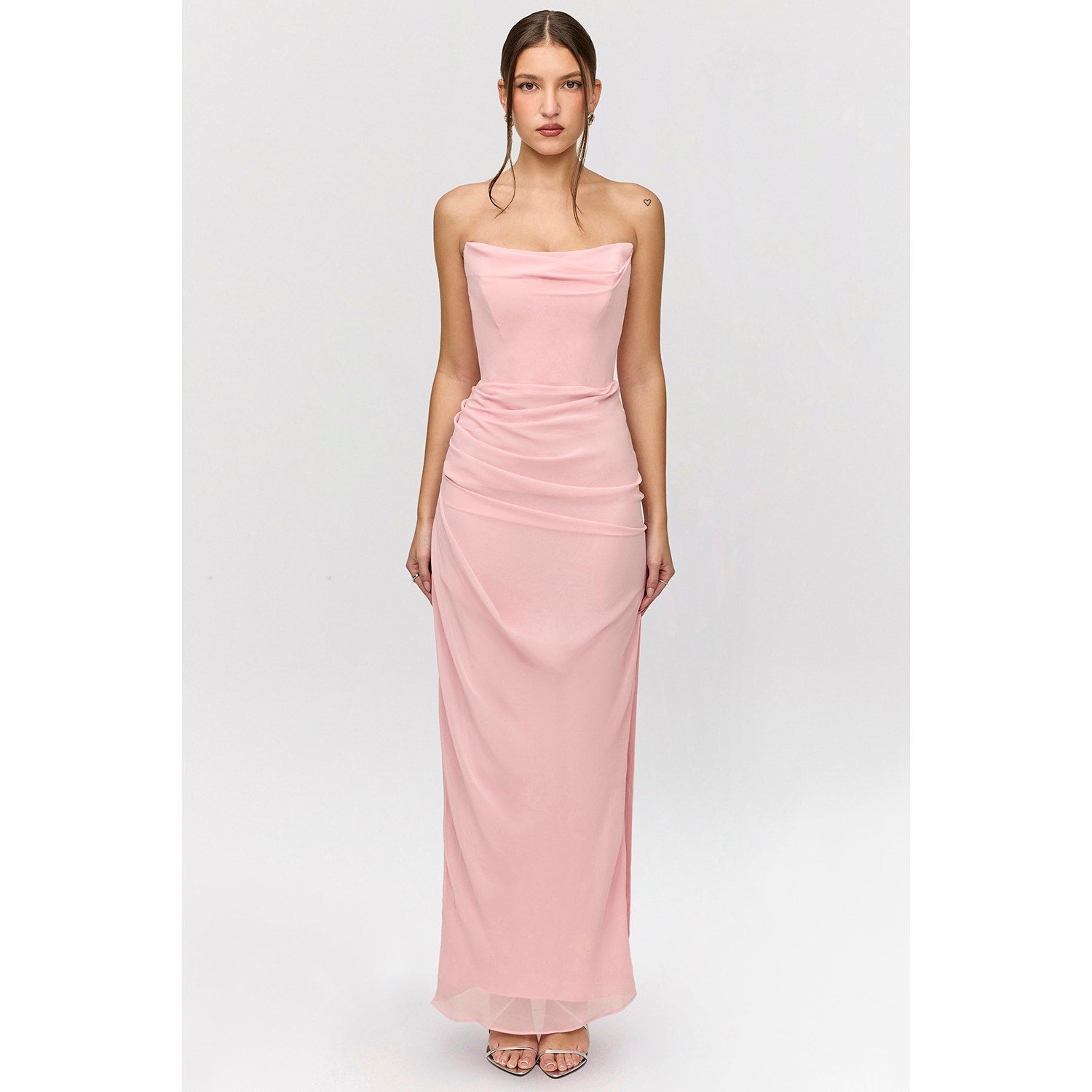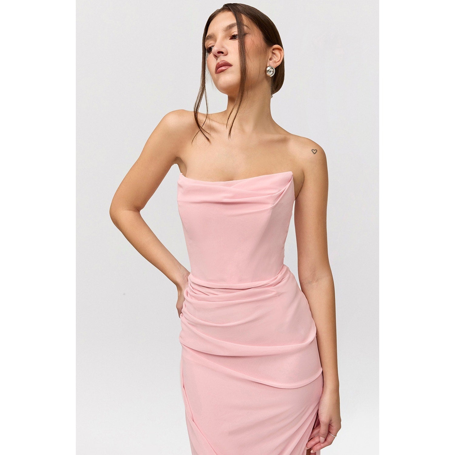 The long skirt drapes gracefully over the hips with pretty gathers over the side and the hem dramatically grazes the floor. The skirt is fully lined for a super smooth and seam free finish. This is suitable for all bust types as it has no cups but the superb corsetry provides ultimate support and uplift. A bra is not necessary but it can be worn if desired. The 'Regular Cup' option suits cup size A-C whilst the 'Bigger Cup' option suits cup size D-E.