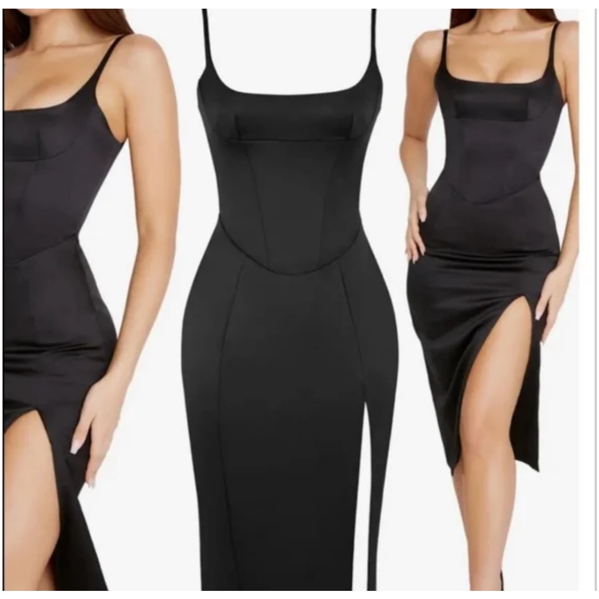 CASIMIRA House of CB BLACK SATIN CORSET MIDI DRESS