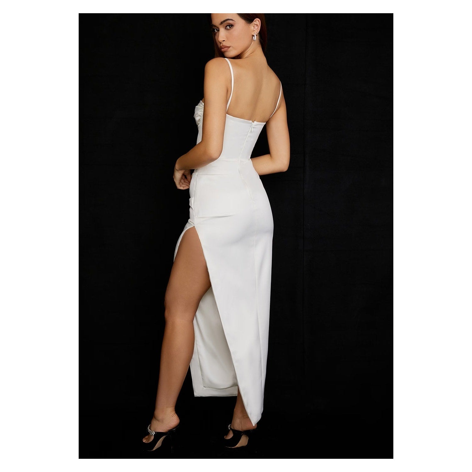 Flora' is our most elegant creation to date and the dress you've been waiting for. Cut from our ultra luxe and lustrous duchess satin, it features our incredible corsetry boning to cinch the waist and has beautifully pleated underwired cups to focus firmly on the finer details. The neckline, slender straps and elegant draping make 'Flora' ultra flattering and we love the split to the skirt to reveal a little leg.