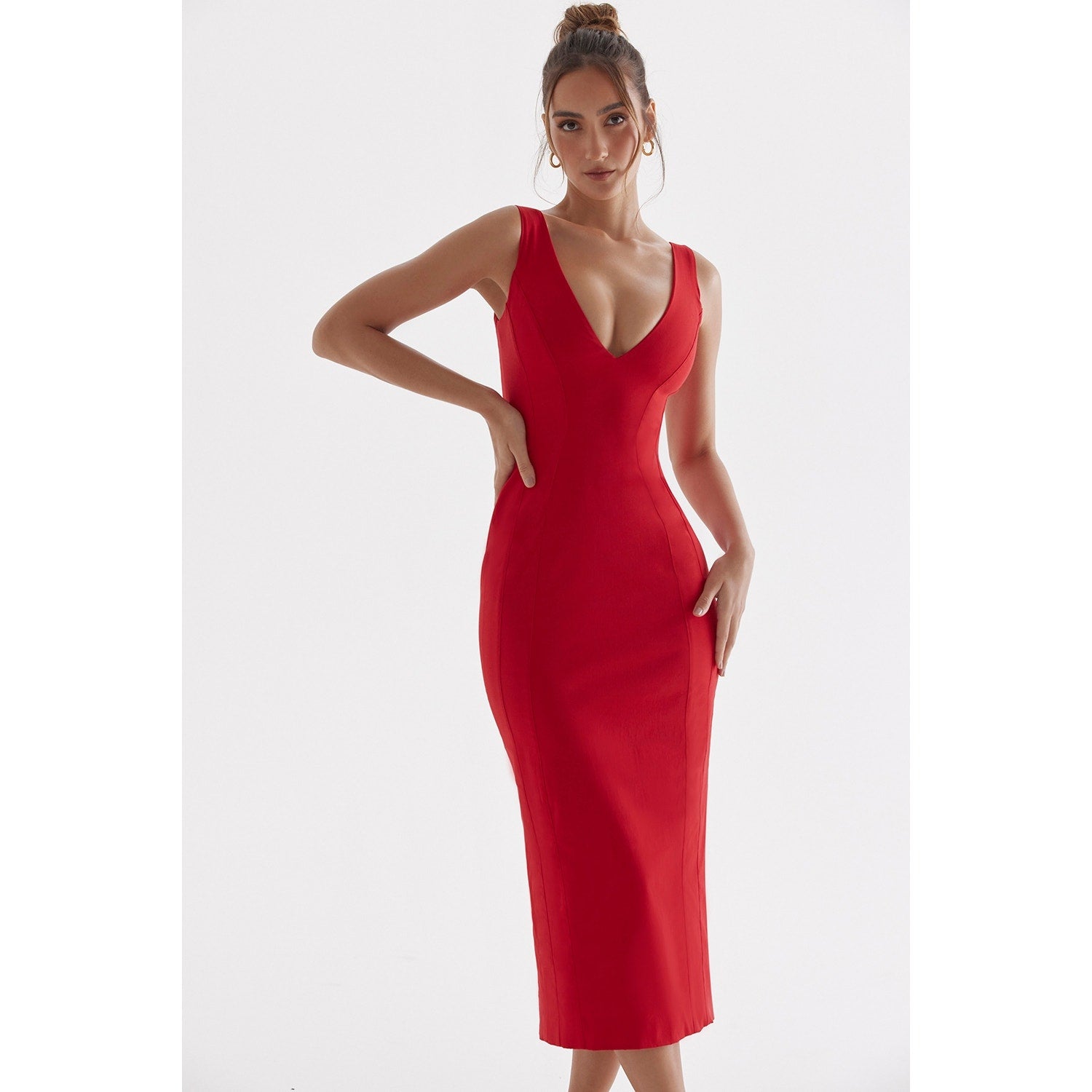 House of CB Cece Red Rose Plunge Maxi Dress