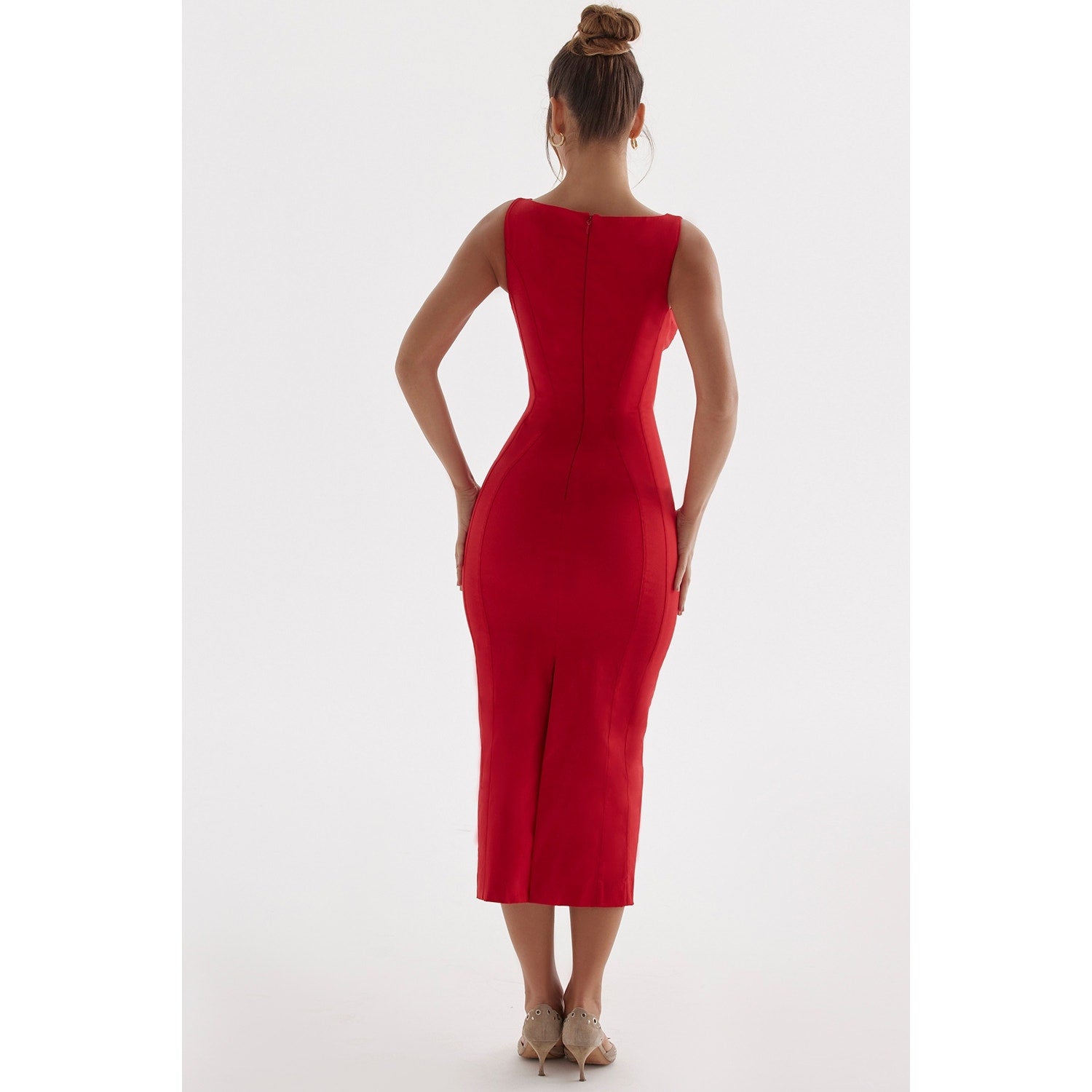 We love the contouring seams for an elegant silhouette and the zip to the back makes for easy on. It is fully lined for a smooth seamless finish. Wear yours with our 'Paris' heels in scarlet to accentuate the romantic vibe.