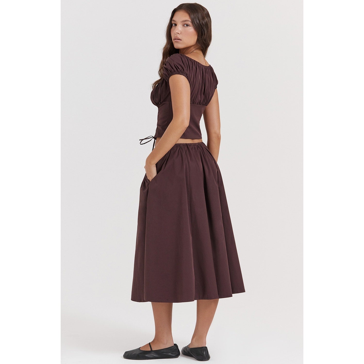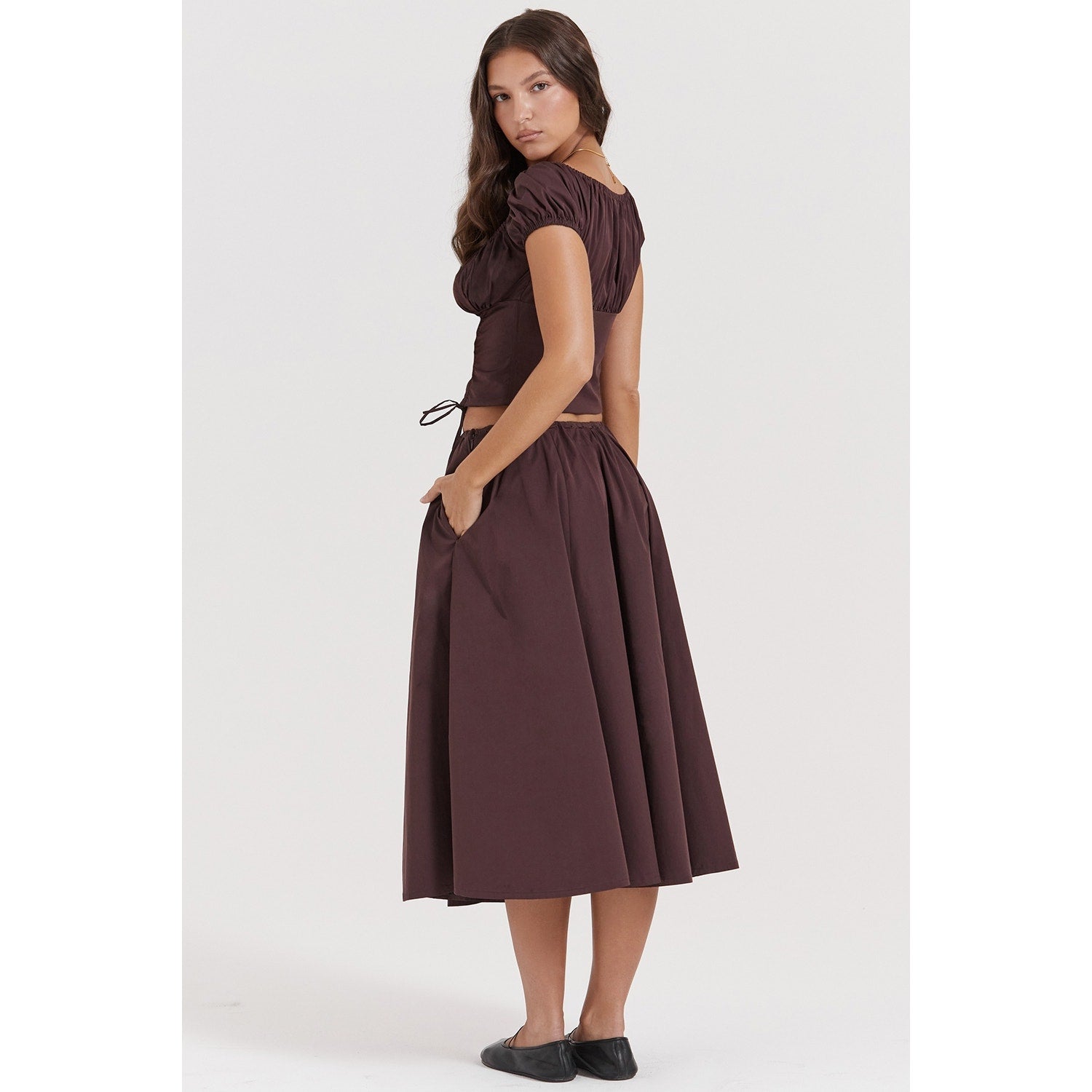House of CB Cora Rich Brown gathered Midi Skirt