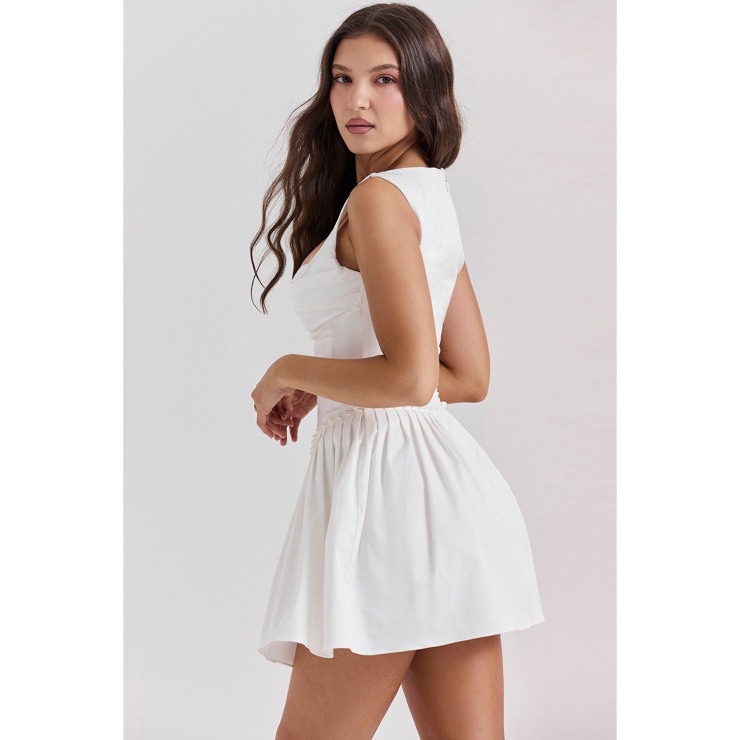 Cupid zips to the back for easy on and looks the prettiest paired with our 'Lola' high heels in white. The 'Regular Cup' option suits cup size A-C whilst the 'Bigger Cup' option suits cup size D-E. Taller girls, we heard you and this is available in two lengths, our regular mini length and 2 inches / 5cm longer. Regular length: Approx 83cm and Longer: Approx 88cm.