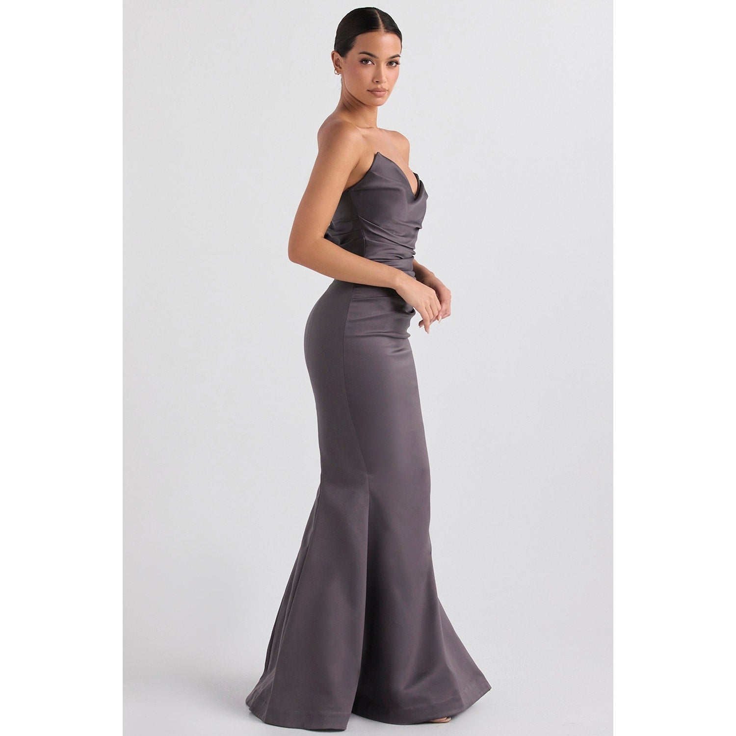 The skirt hugs every curve as it falls to the knee then flares out to an ultra feminine fishtail shape to graciously sweep the floor. It has a zip to the back for easy on and is fully lined for a smooth and comfortable finish. Wear yours with dainty mules like 'Lucent' and delicate jewellery.
