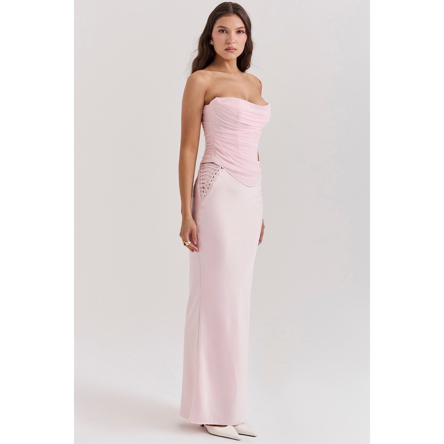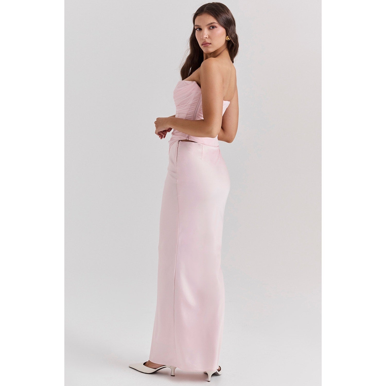 House of CB Giuliana Ballerina Pink Satin Maxi Skirt