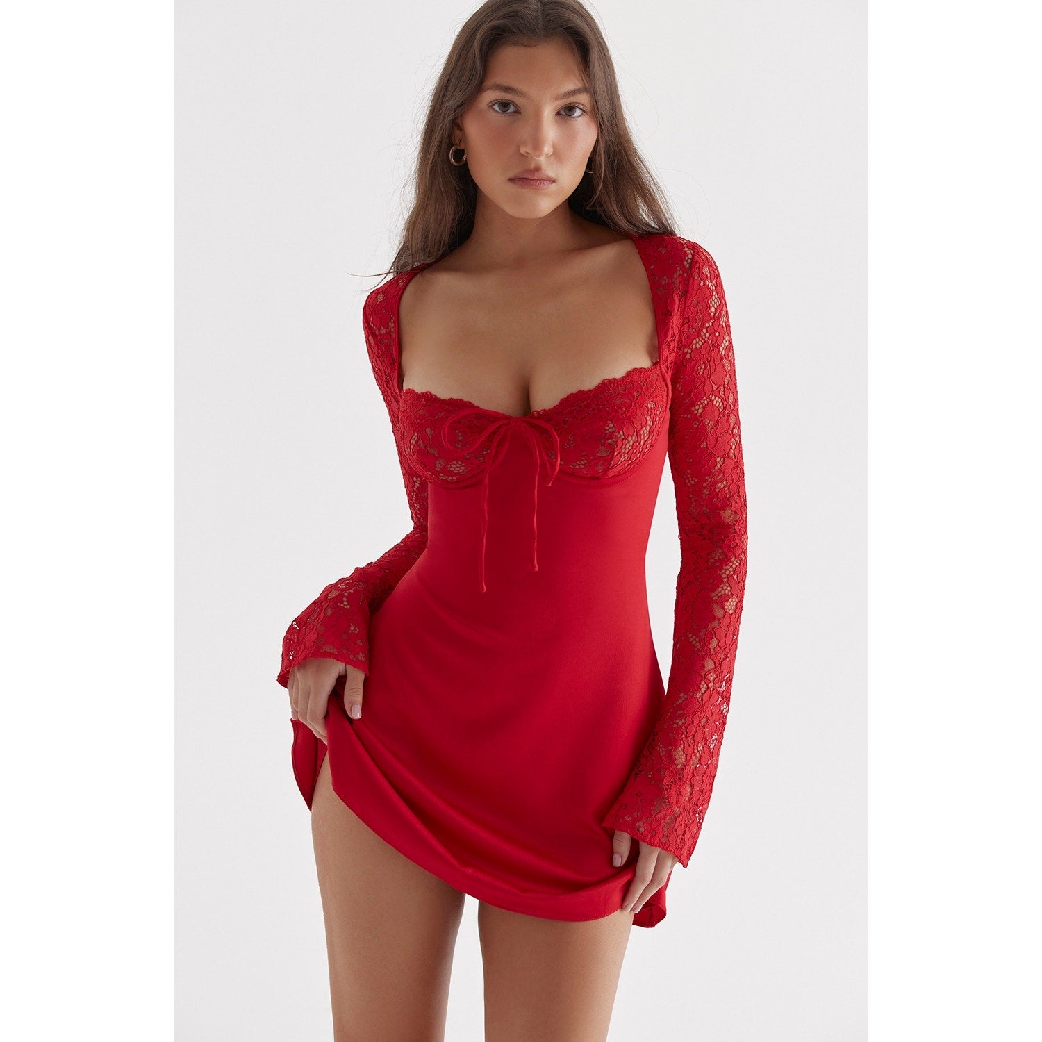 House of CB Jennica red rose satin and lace mini dress