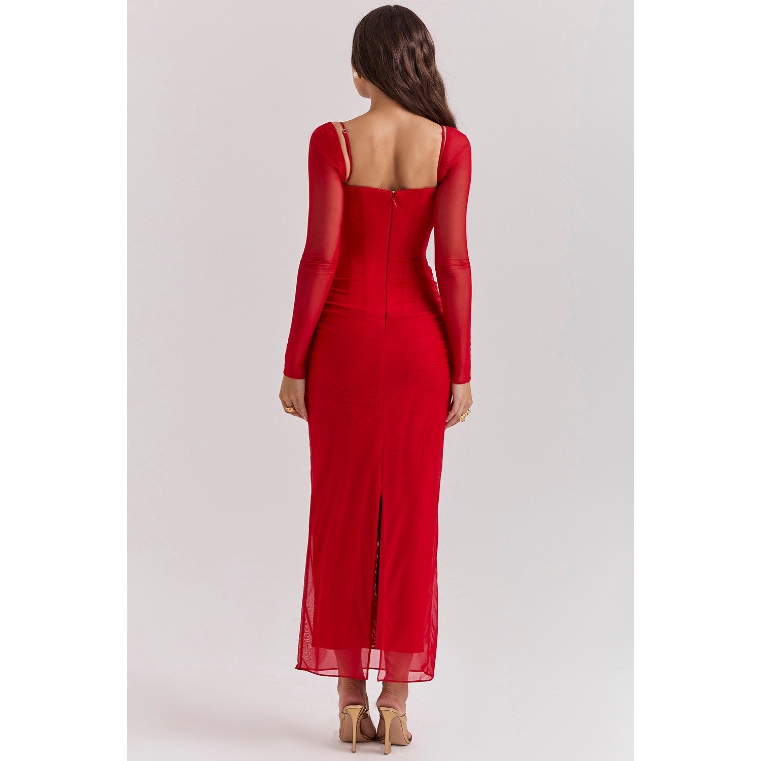 House of CB Katarina Scarlet Long Sleeve Maxi Dress