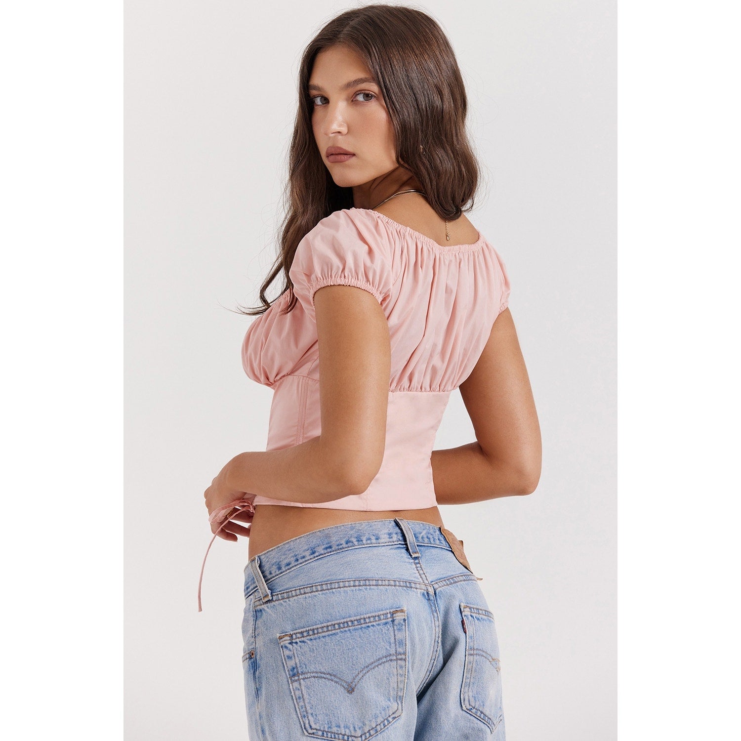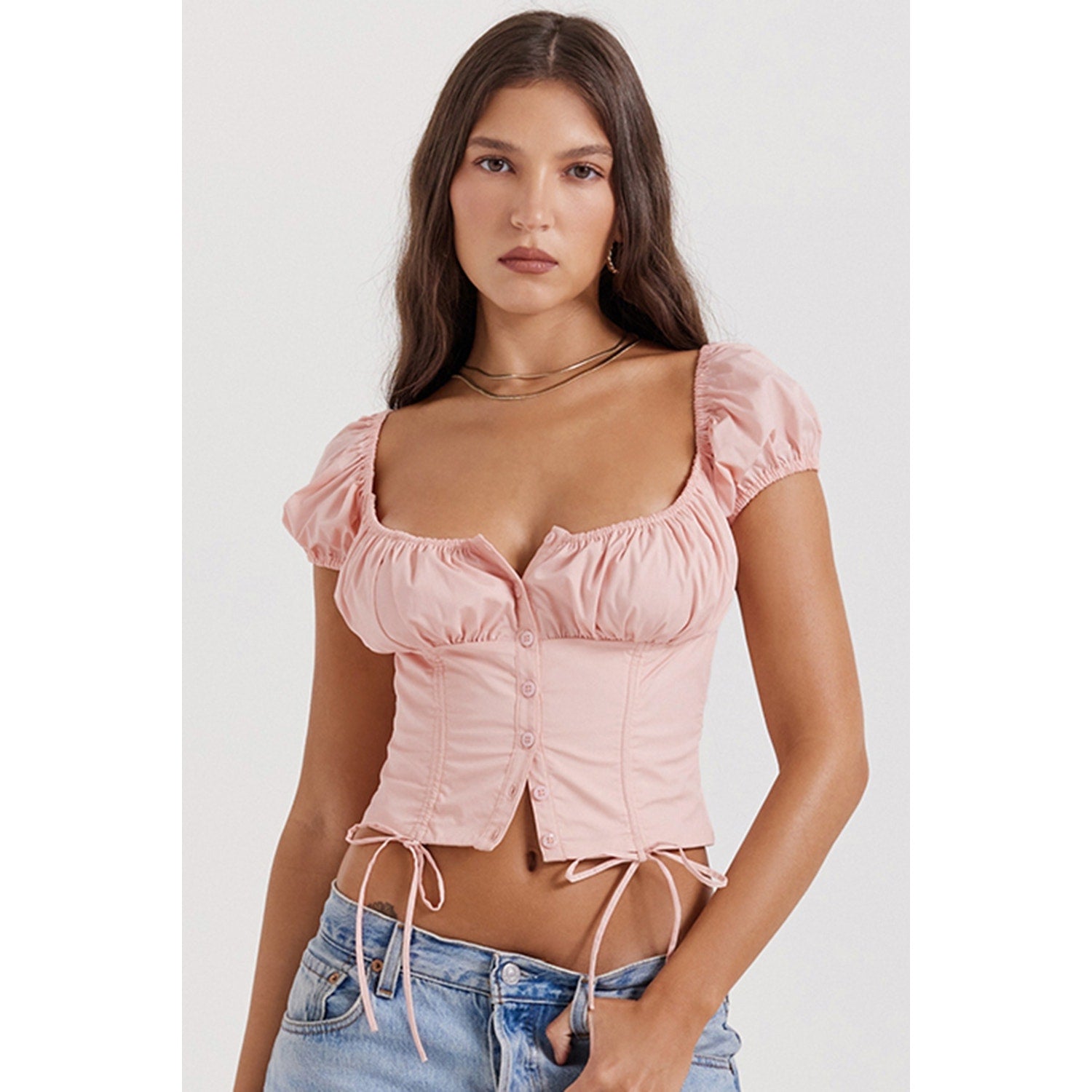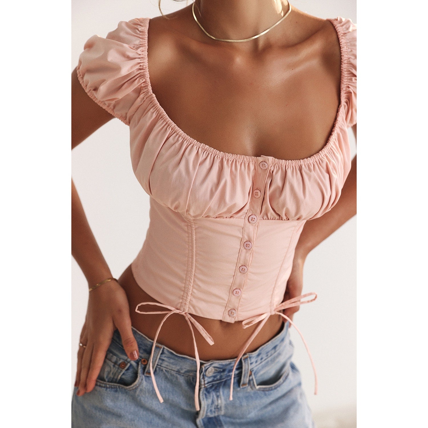 House of CB Kitty baby pink gathered top