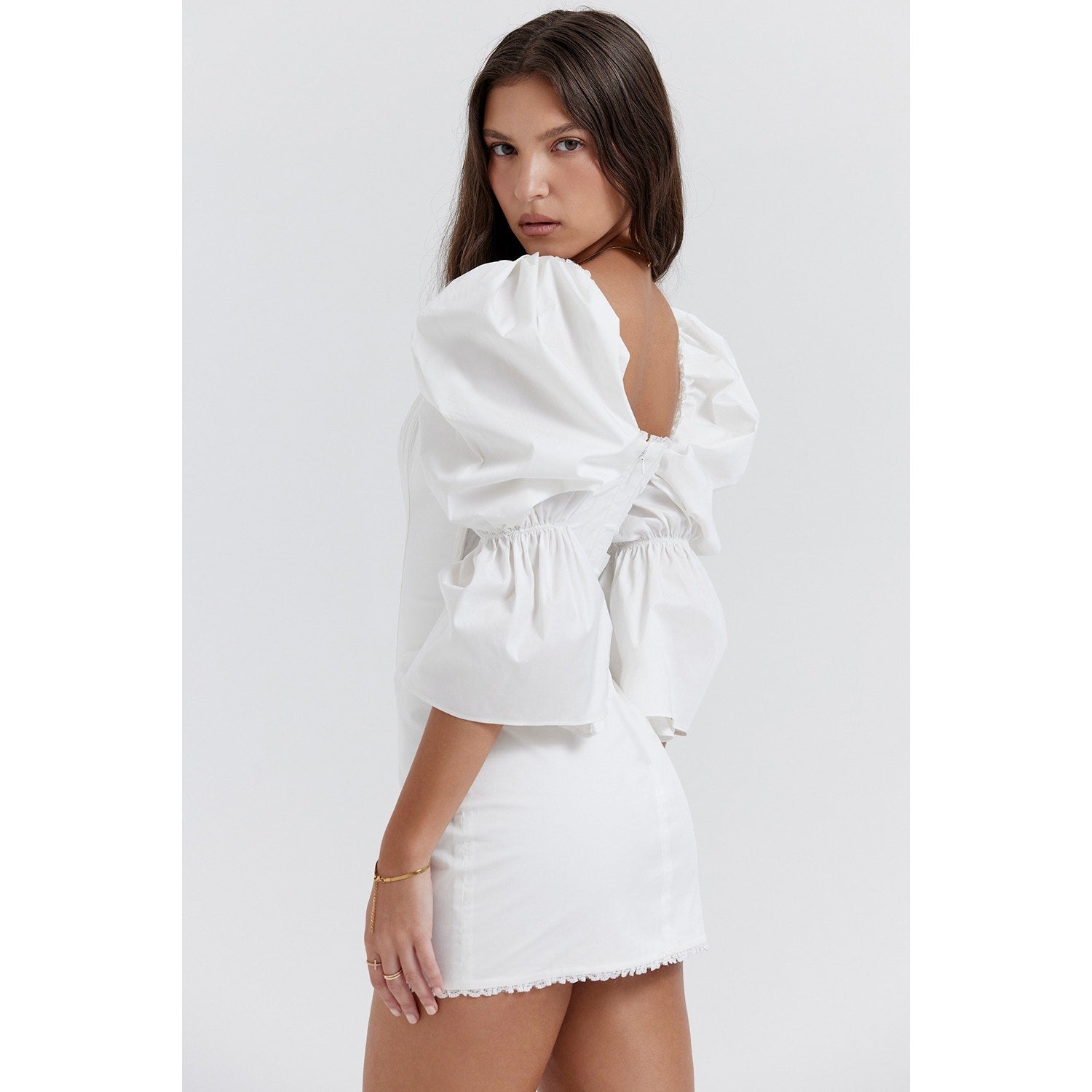 House of CB Matilda white puff sleeve corset dress