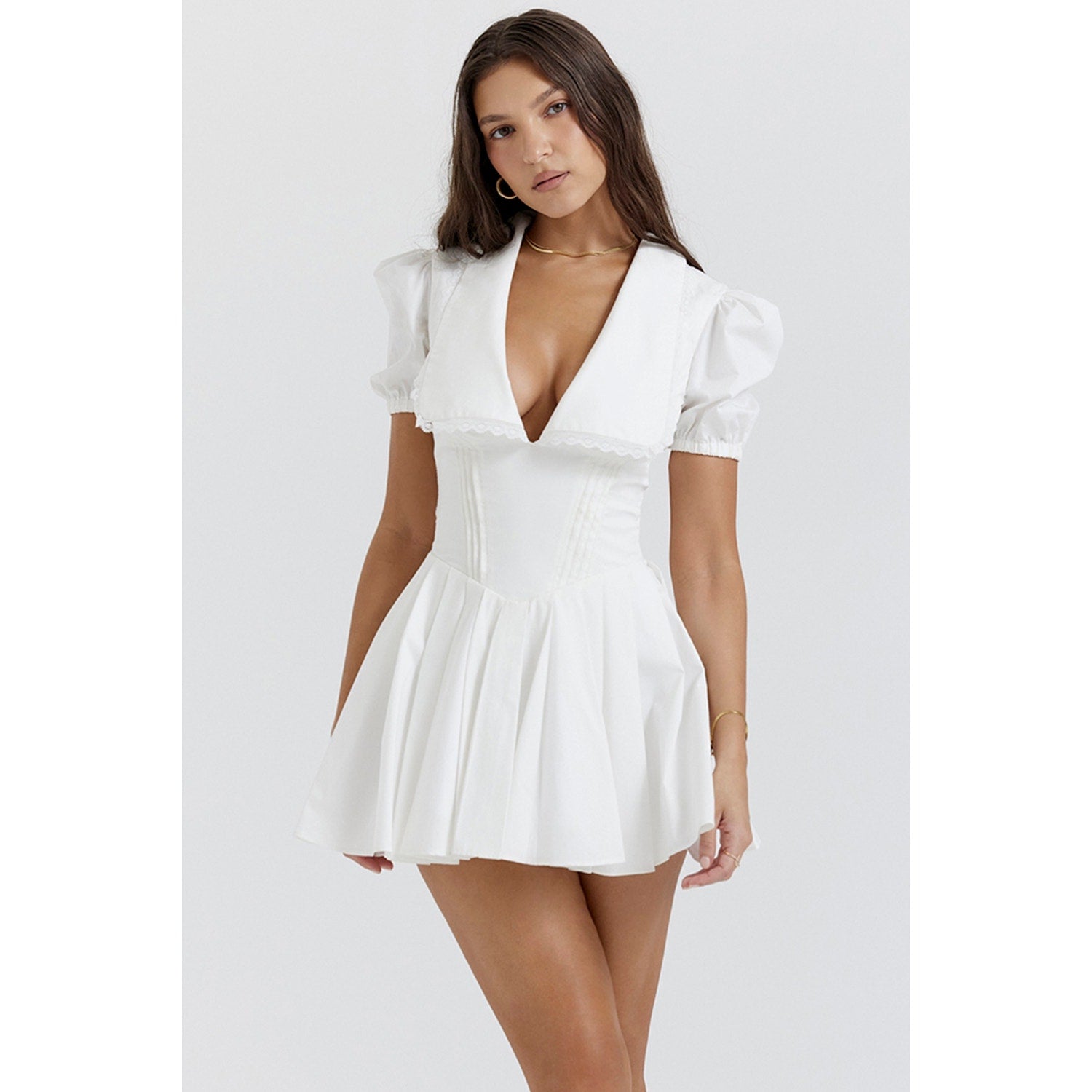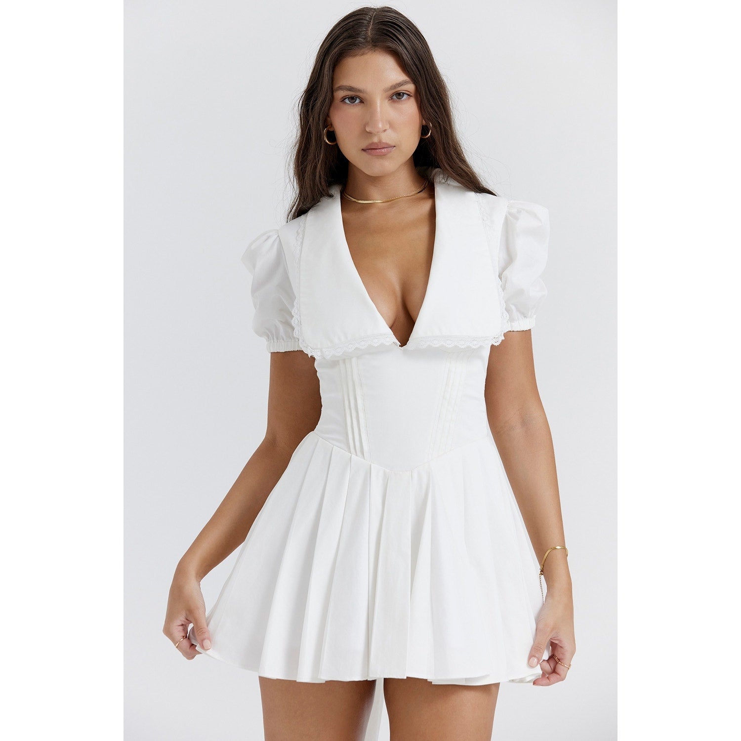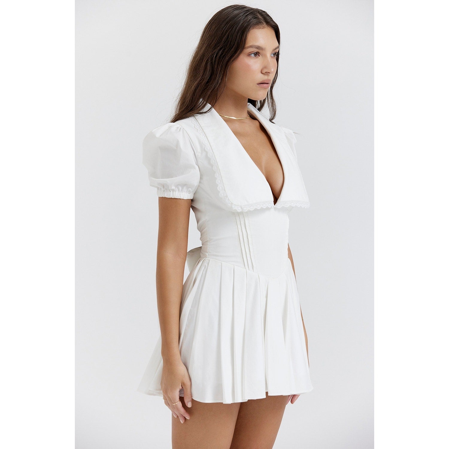 House of CB Piera white pleated mini dress