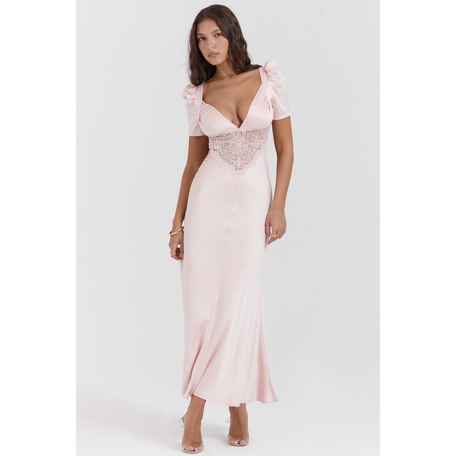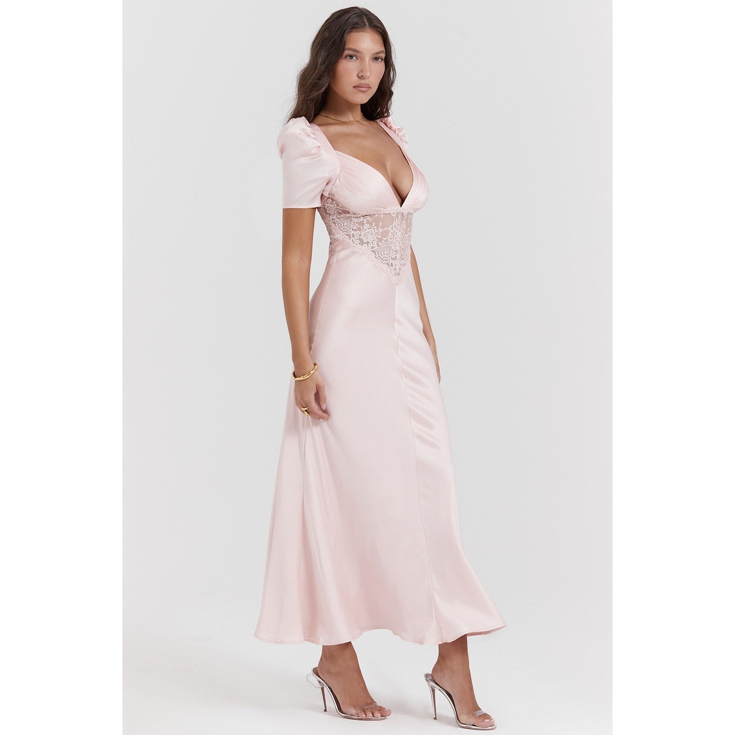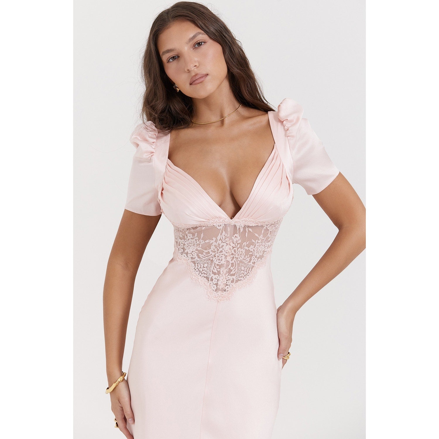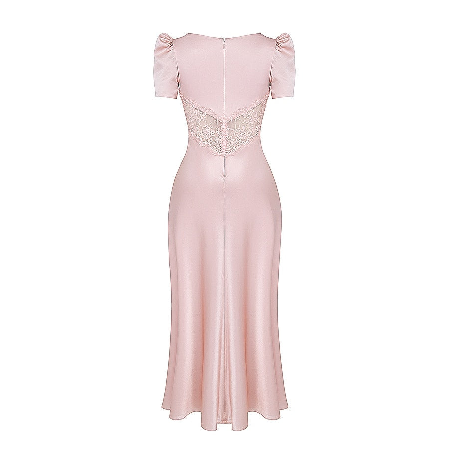 House of CB Rafaela soft peach pure silk & lace dress
