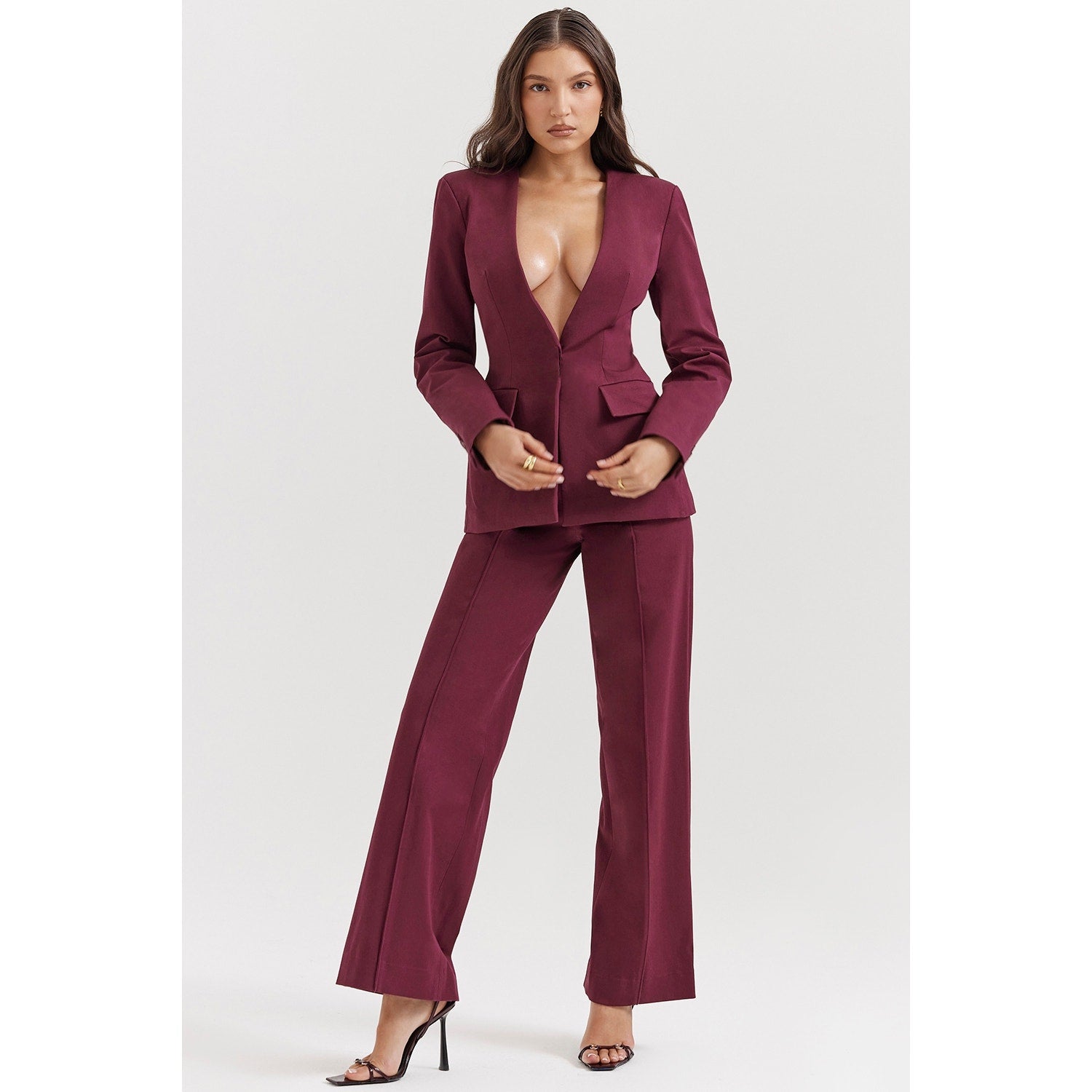 House of CB Rivi wine straight leg trousers