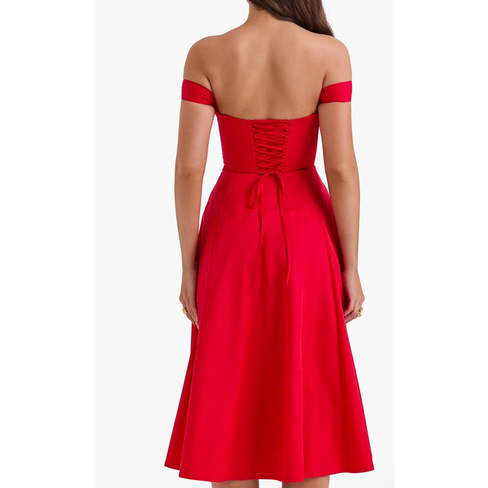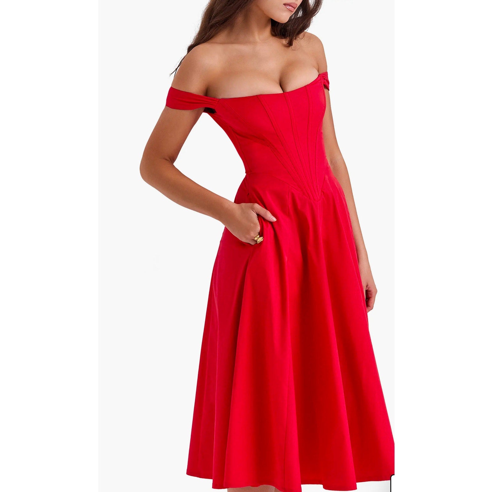 Reminisce on the beauty of nature in this pocket-adorned cocktail dress made of a stretchy cotton blend and designed with a supportive corset-inspired bodice.