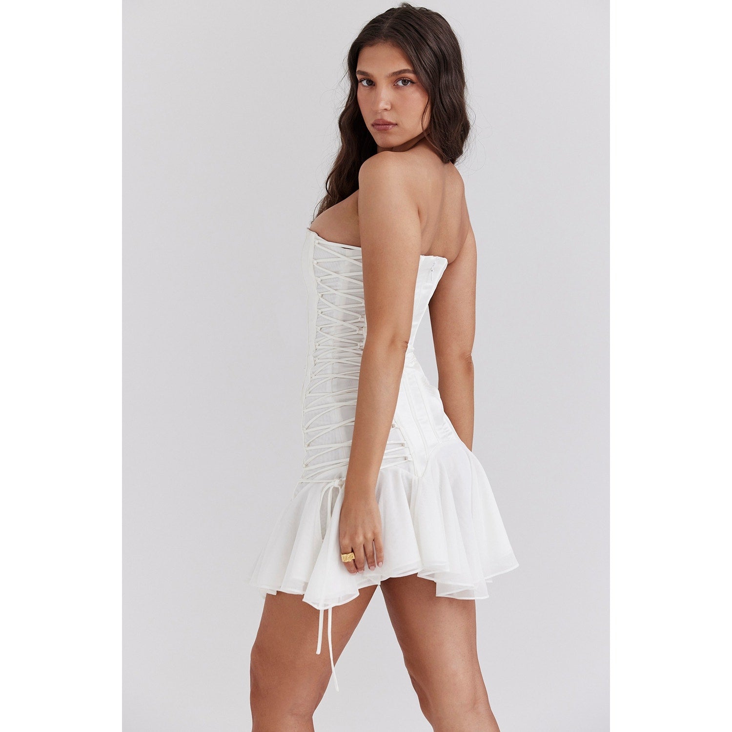 It zips to the back for easy on. We love 'Sirena' paired with dainty mules like 'Andromeda' in off white for your next party and be the most glamorous guest on the list. Taller girls, we heard you and this is available in two lengths, our regular mini length and 2 inches / 5cm longer. Regular: Approx 71cm and Longer: Approx 76cm.