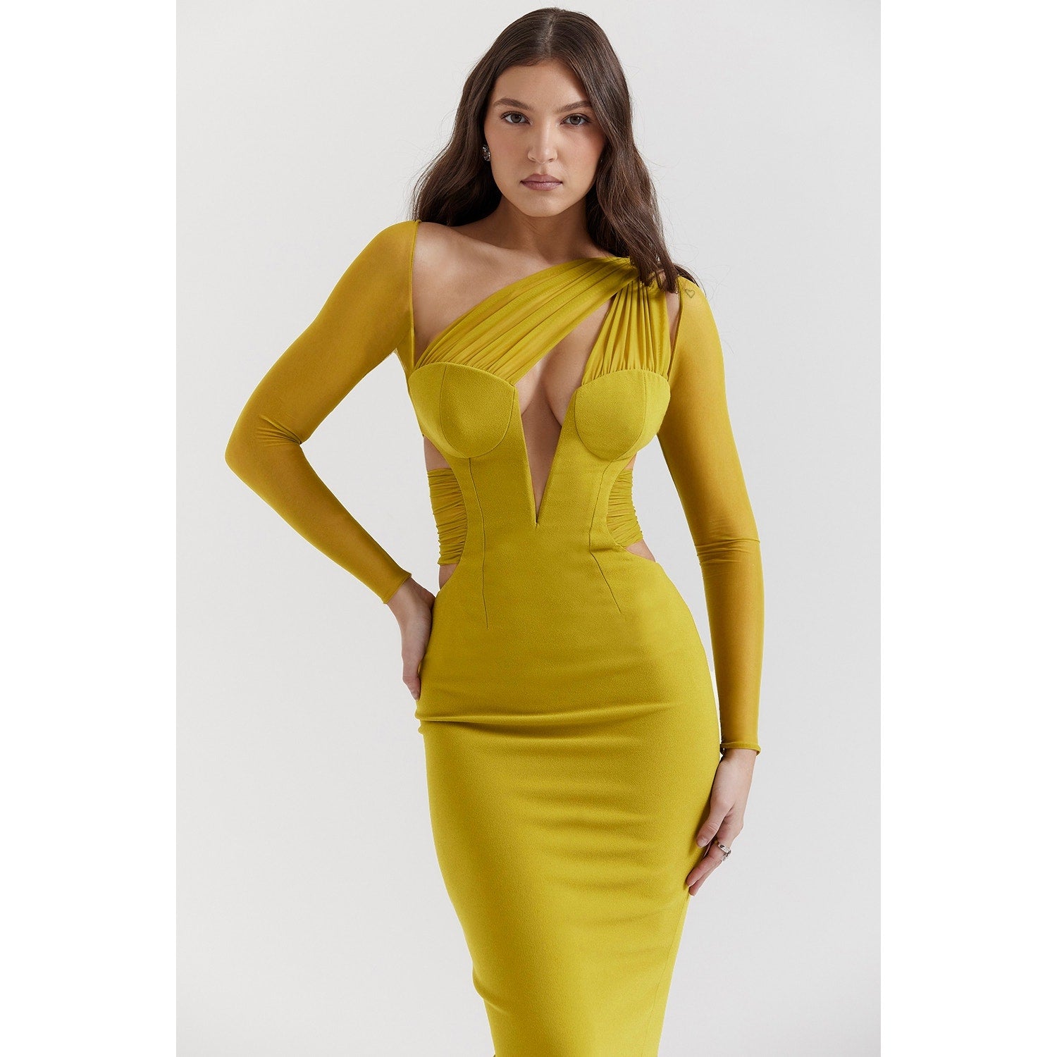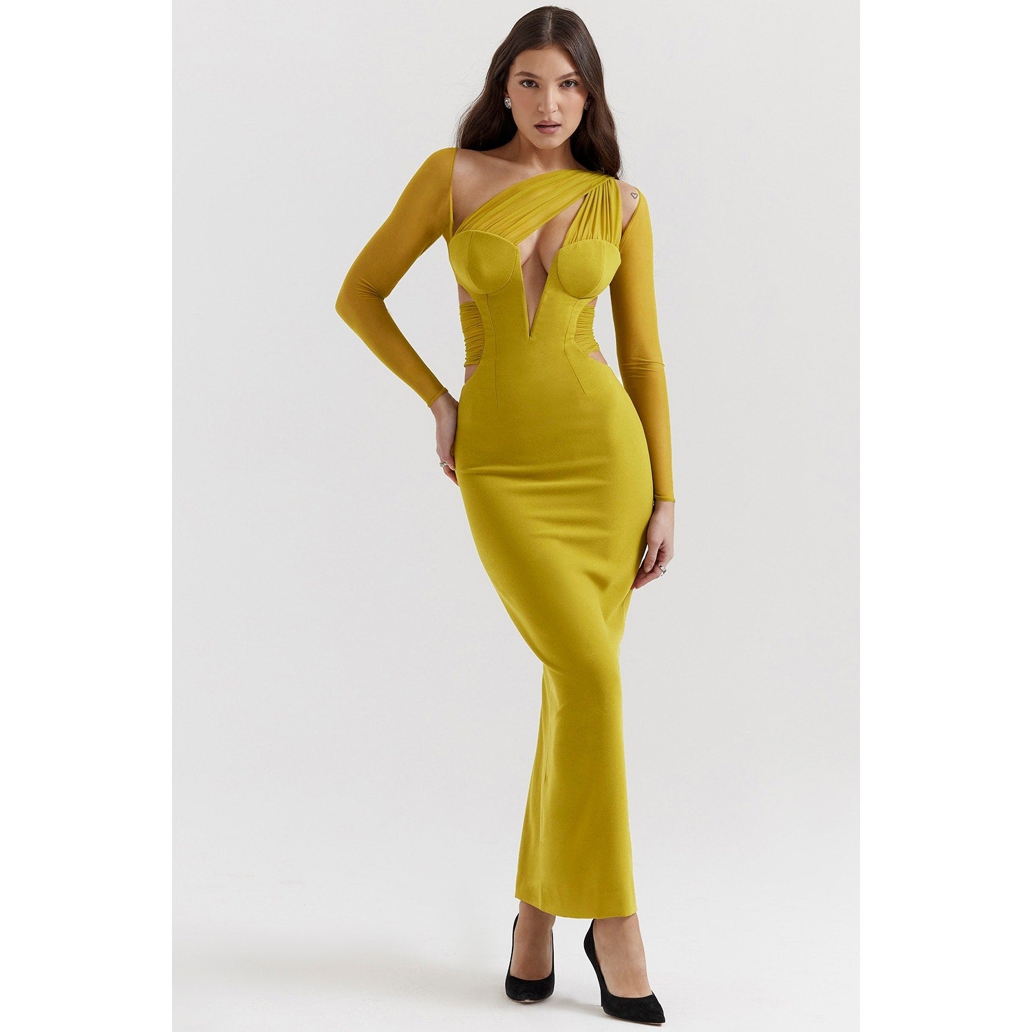 The lightly padded cups are ultra flattering and the side cutouts reveal a flash of skin, keeping it sexy as it caresses your curves right down to the ankle grazing length. 'Zahra' zips to the back for easy on with a generous split to the hem and we love her paired with our 'Paris' heels in black. The 'Regular cup' option suits cup size A-C whilst the 'Bigger Cup' option suits cup size D-E.
