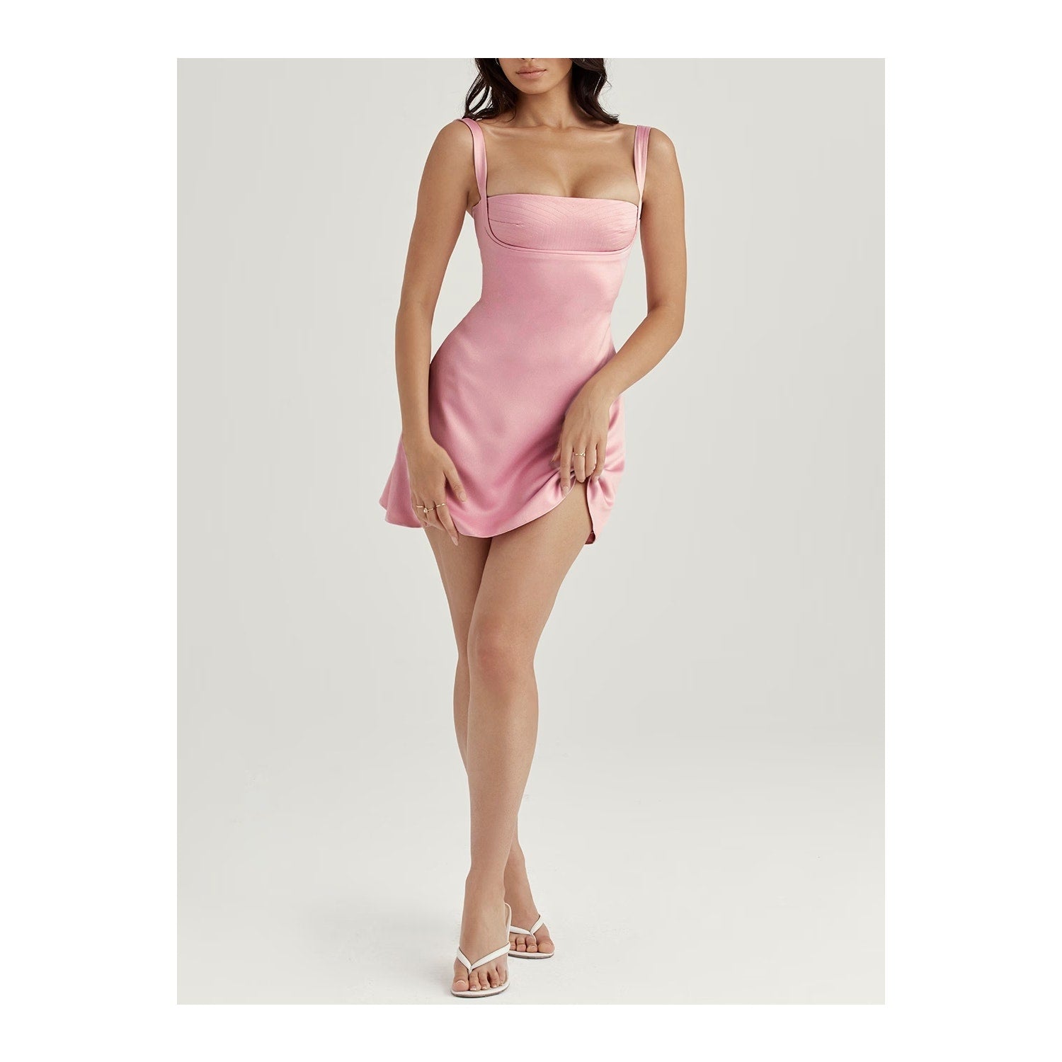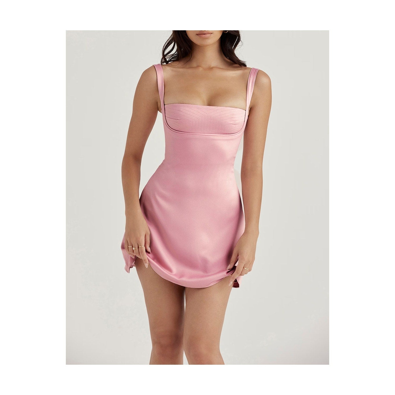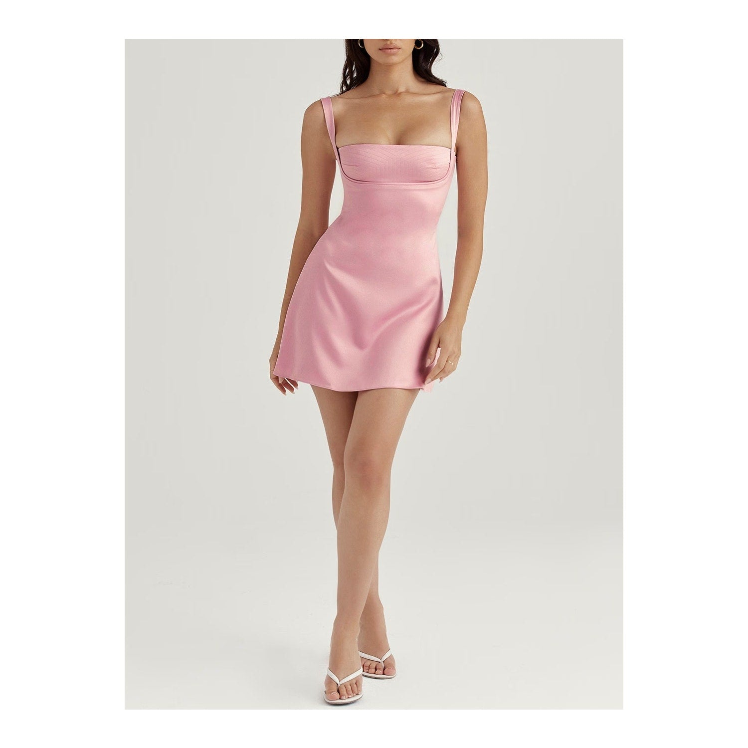 This 'Kara' mini dress is feminine and elegant, perfect for any occasion! It is cut from our lustrous, ultra light duchess satin in a pretty pink hue that drapes effortlessly. The floaty feel to 'Kara' flares gently at the hem. It is fully lined for comfort and has a zip to the back for easy on and off.