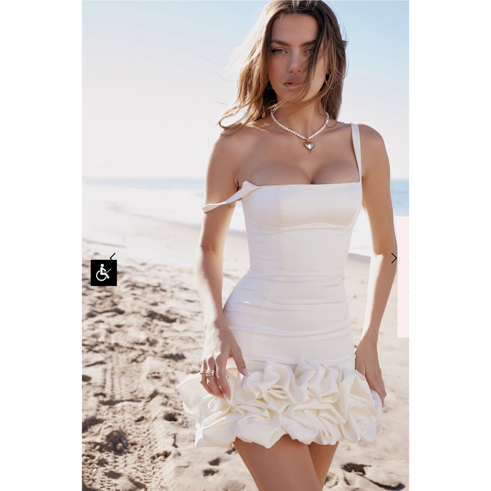 'Lilou' is just made for nights to remember. Cut from luxurious ivory satin, it's adorned with a ruffle hem and is cut straight across the bust for an ultra flattering fit. Team yours with pretty heels and let the dress do the talking.