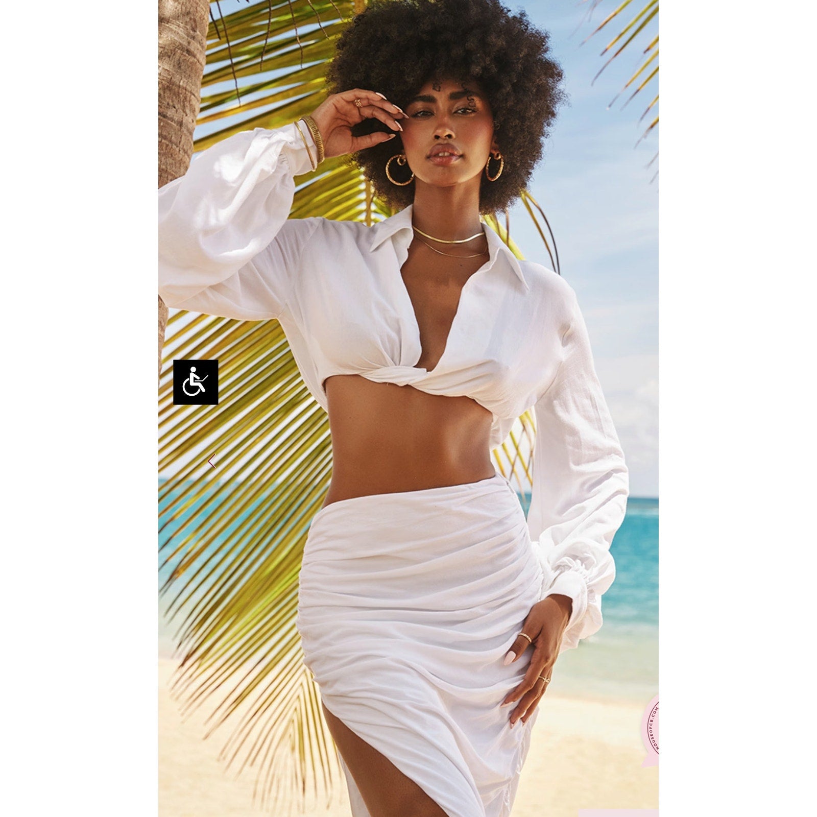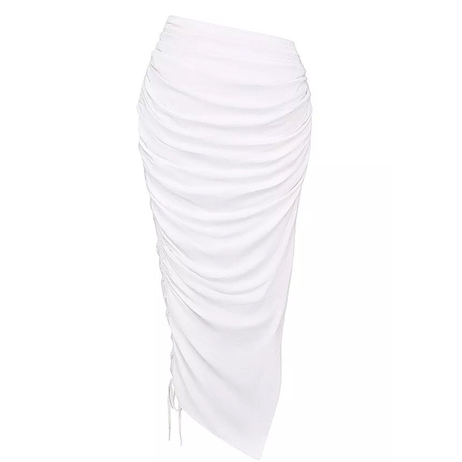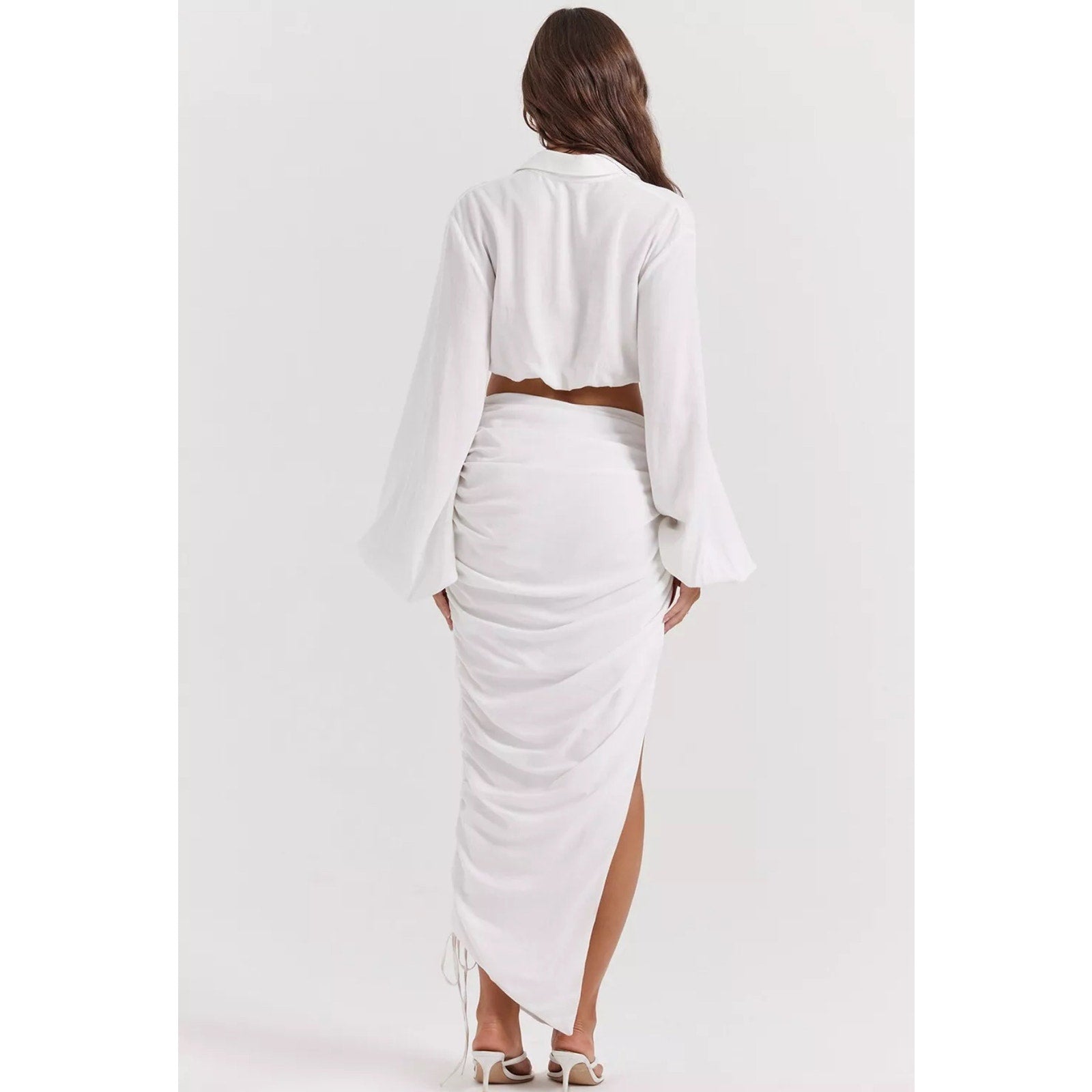 'Loie' ticks all the boxes for your next summer holiday. Cut from a lightweight textured linen, this ultra chic gathered skirt is the perfect mix of elegant and sexy with its figure skimming fit and side split that parts beautifully as you walk. The drawstring ties maximise the gather that adds to the pretty feel of 'Loie'.