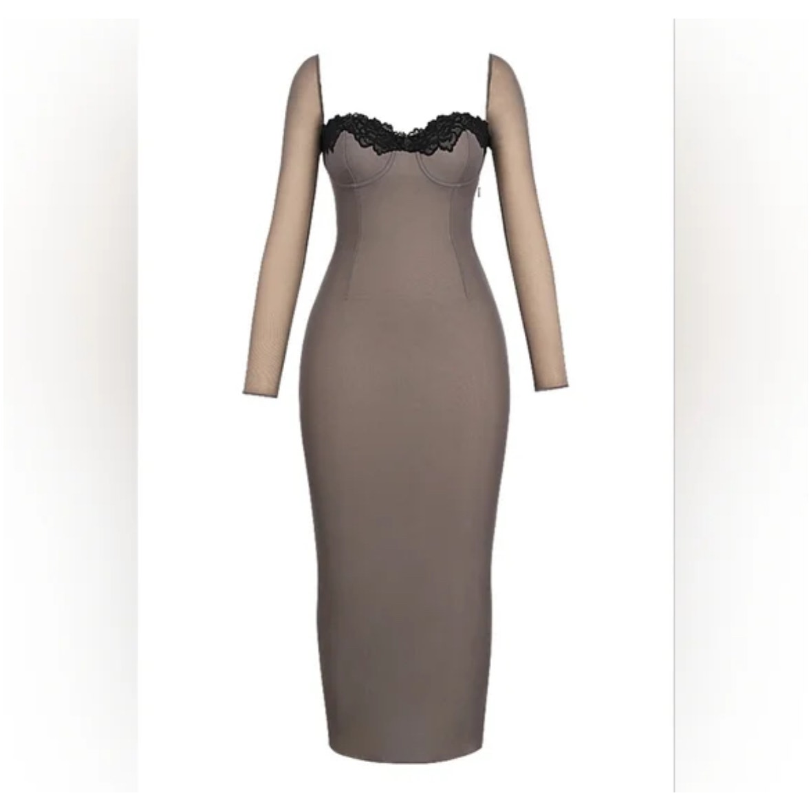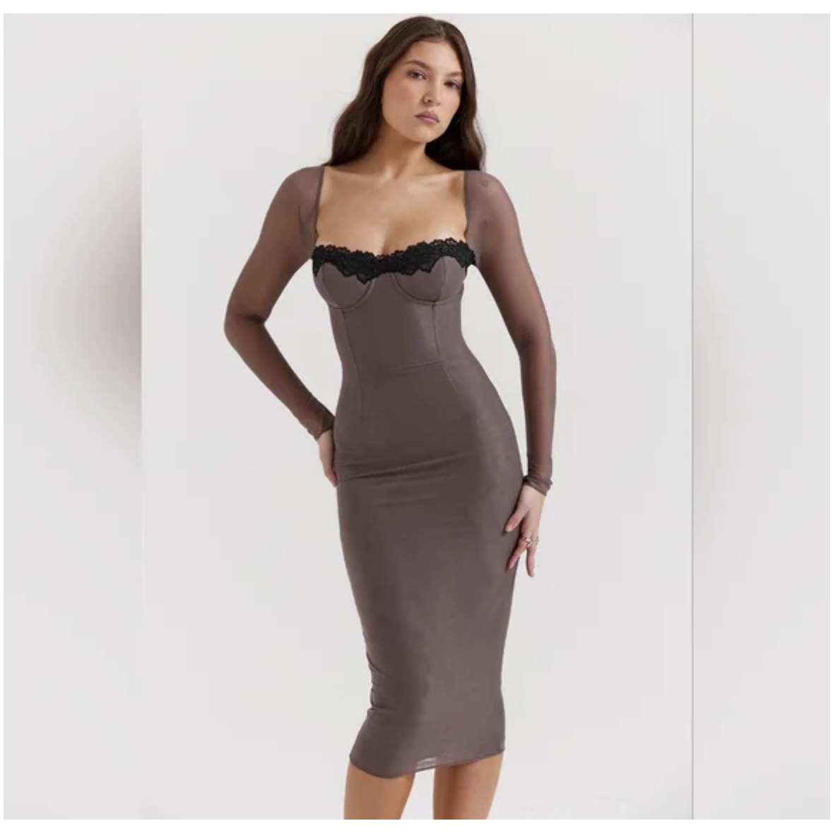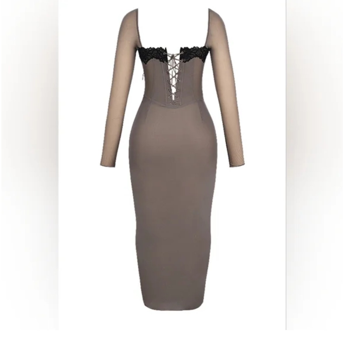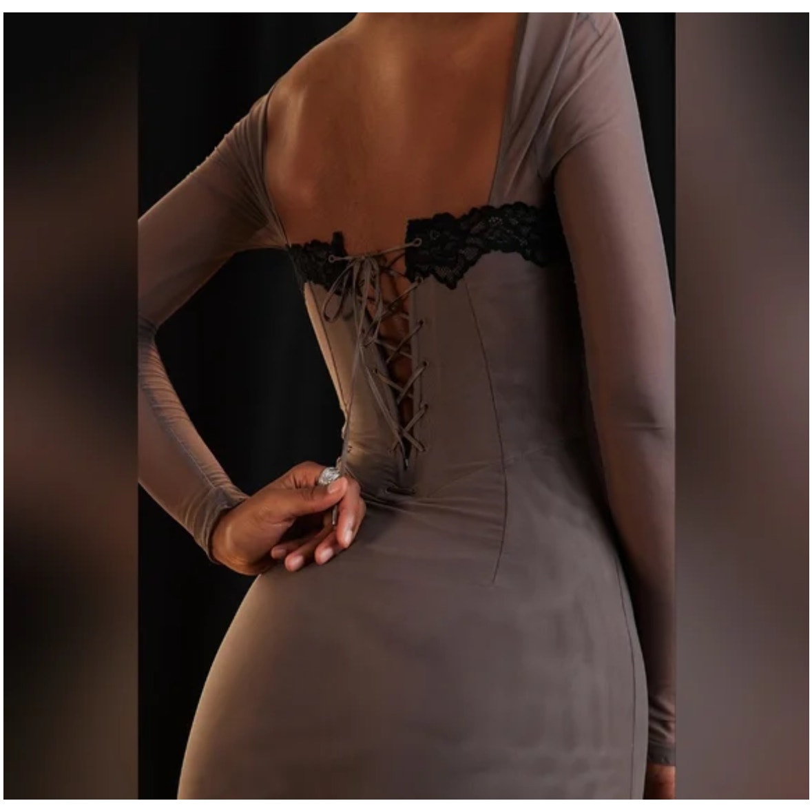Seraphina' is our effortlessly glam top seller and for great reasons. Cut from soft stretch mesh to beautifully hug your curves with underwired cups and supportive internal boning to cinch the waist. This version comes in an ultra-wearable smoke that's flattering for all skin tones. We love the romantic lace up back and 'Seraphina' falls to a flattering midi length. UNDERWEAR SOLUTION: No bra required as it's cupped and lined. Made from soft stretch mesh. Fully lined body. Gentle Dry Clean only