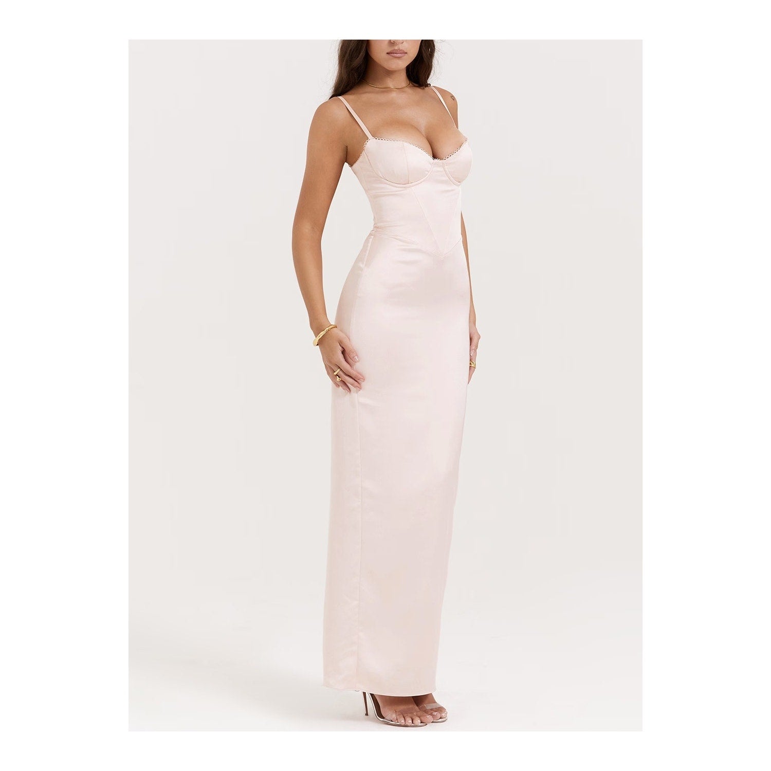 Stefania soft peach corset maxi dress Authentic
