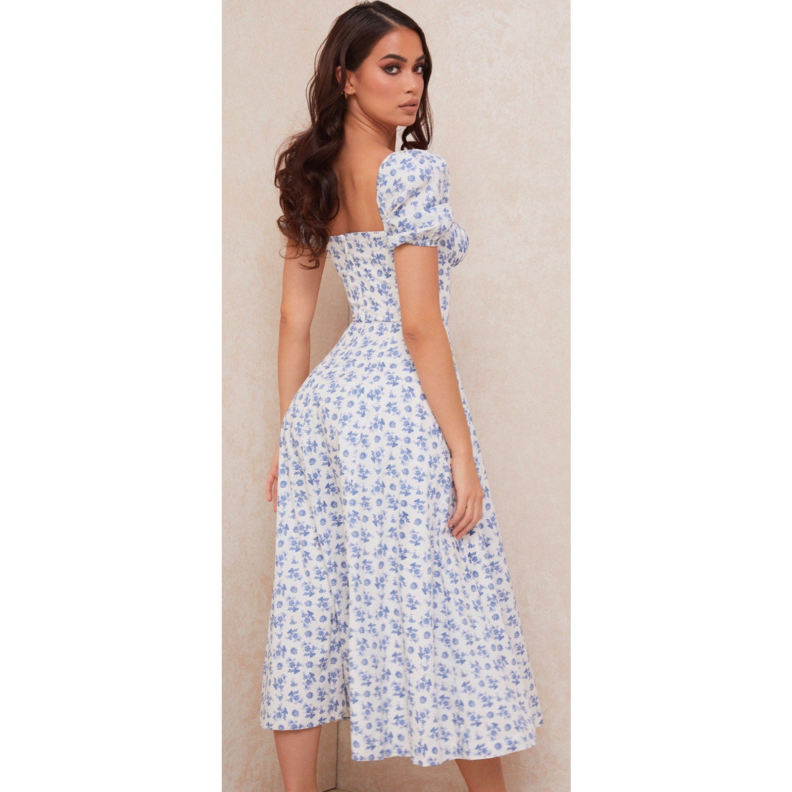 TALLULAH BLUE WHITE FLORAL MIDI DRESS
